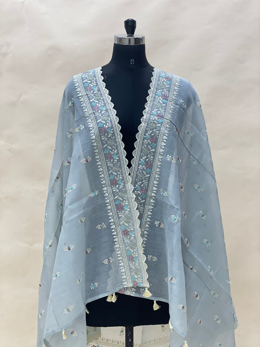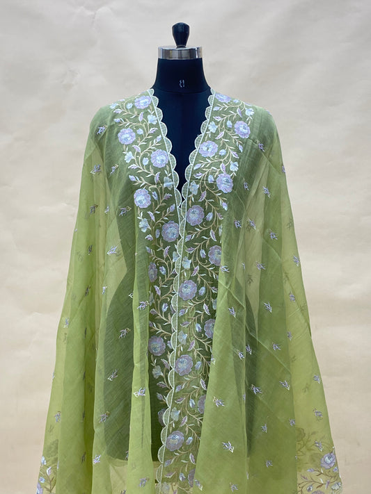 Delicate Stunning Floral Thread Embroidery On Chanderi Dupatta