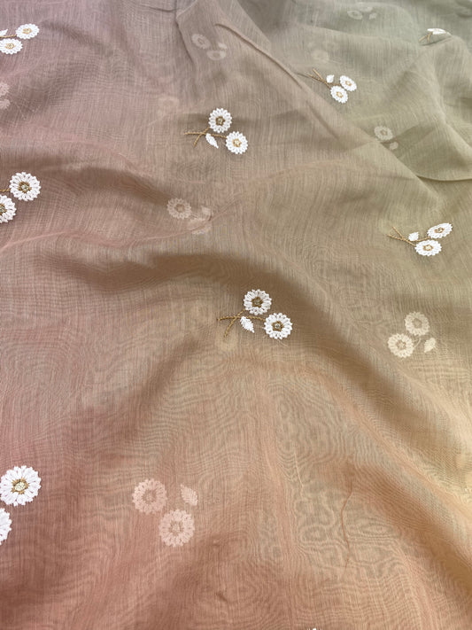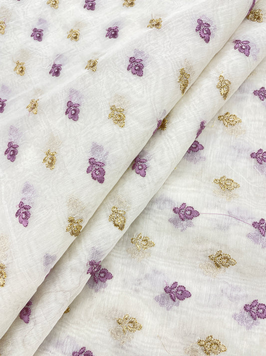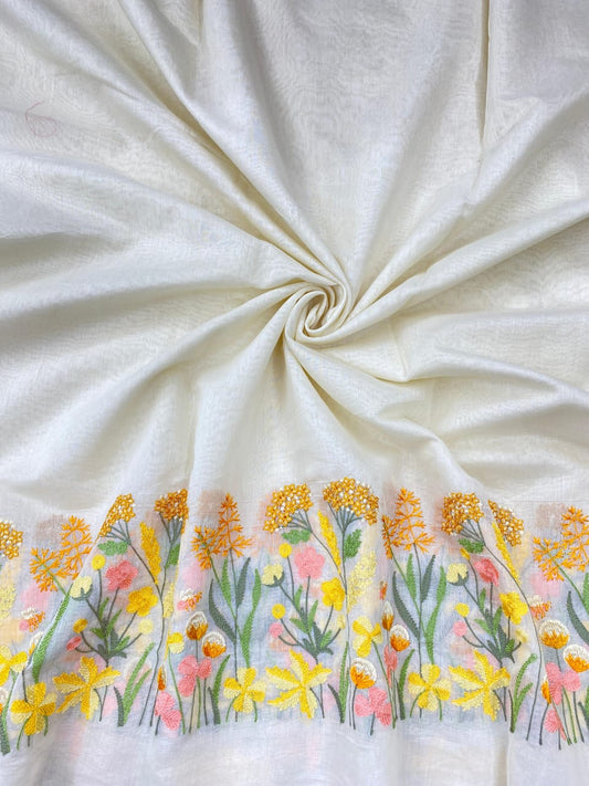 Pure Chanderi 4DColor Thread Embroidery (Color Available) 44"Inch