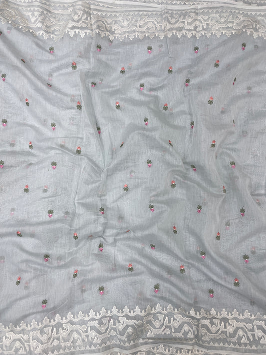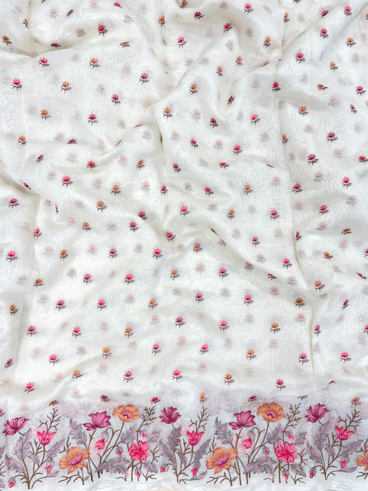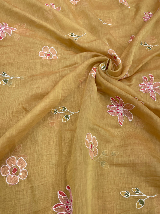 Gorgeous Looking Multi Thread Embroidery On Chanderi Fabric
