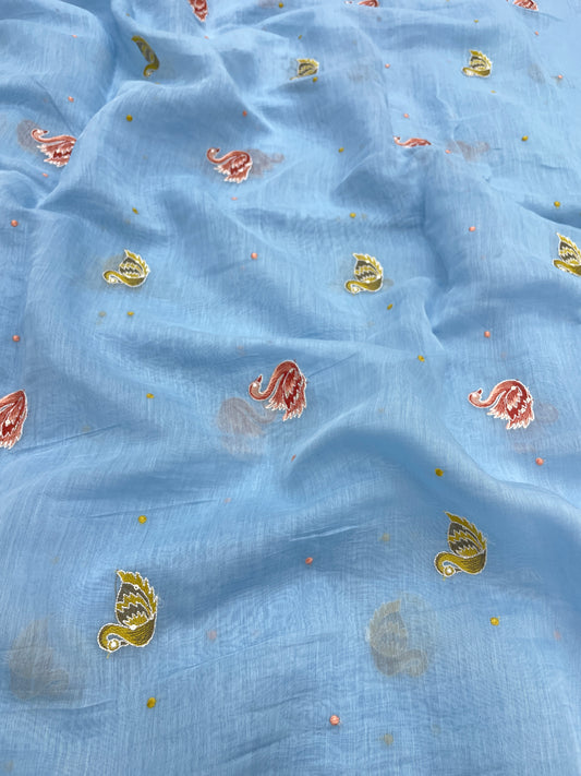 Elegantly Amazing Ethnic Thread Embroidery On Chanderi Tissue Fabric