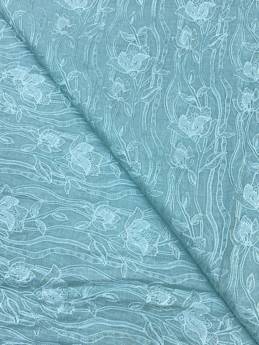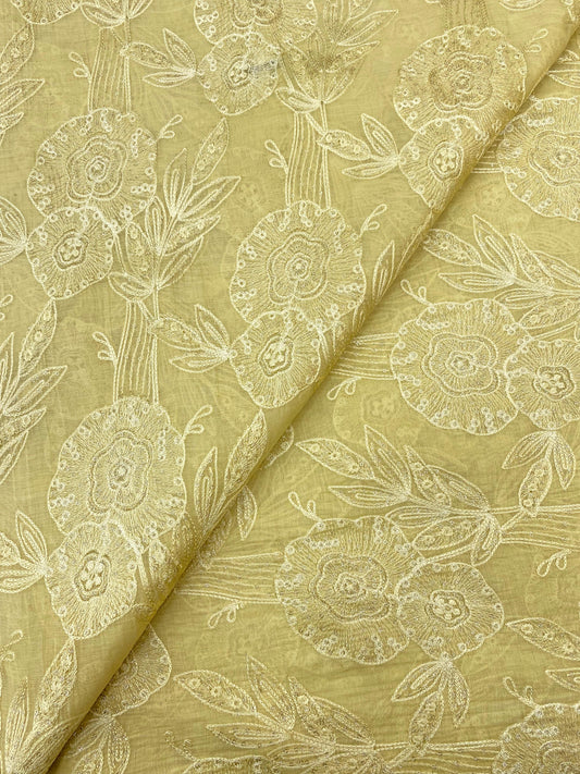 Chanderi embroidery with beads (Color Available) 44"Inch