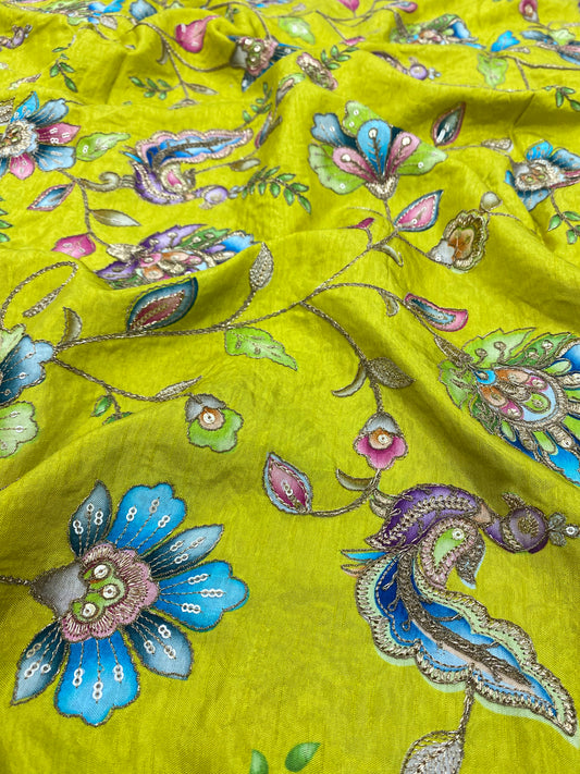 Adorable Eye Catching Multi Color Thread Embroidery On Dola Silk Fabric
