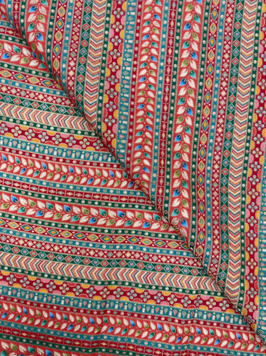 Dola Silk Position Print With Embroidery (colours Available) 44"Inch