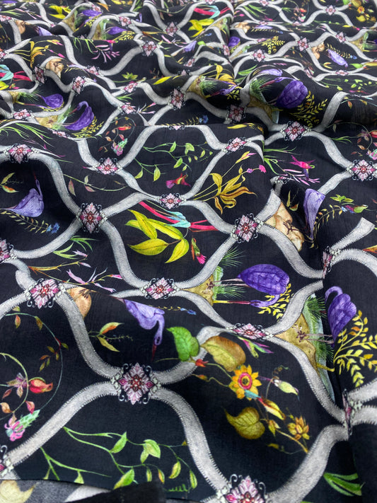 Dola Silk Jacquard With Print (Color Available) 44"Inch
