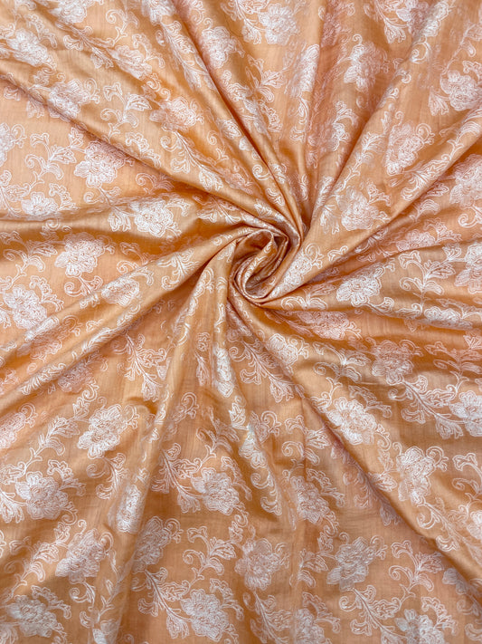 Lining Thread Embroidery On Pure Munga Silk Fabric