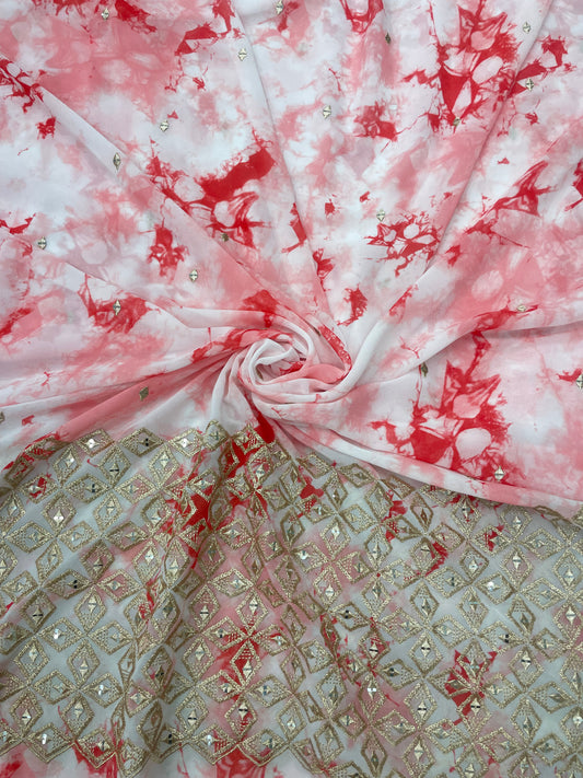 Gorgeous Stunning Shibori Print With Sequin And Zari Work On Georgette Fabric