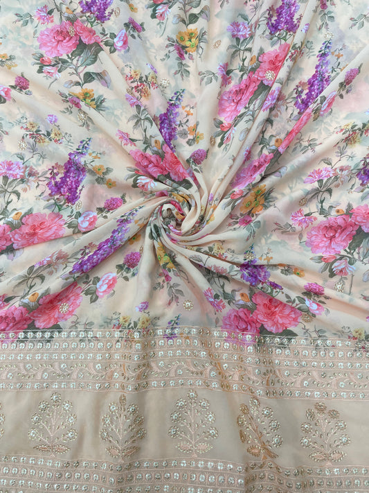 Pretty Fascinating Multi Color Floral Print With Sequin Work And Thread Embroidery On Georgette Fabric