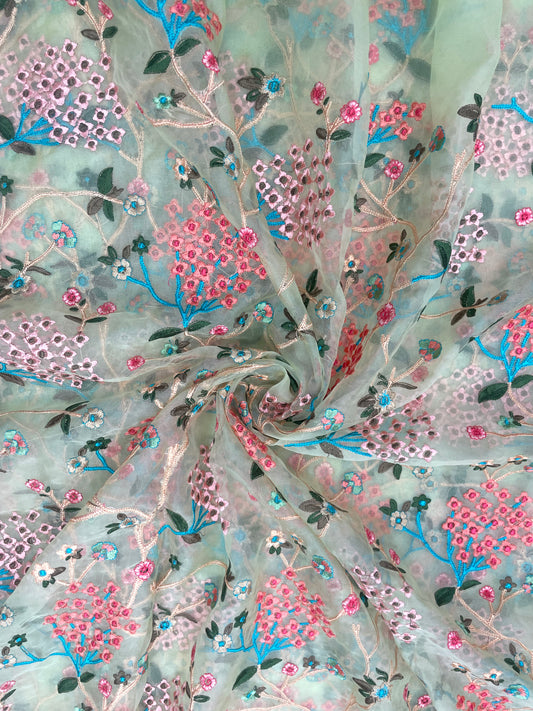 Luxurious Fantastic Multi Color Dainty Pretty Floral Thread Embroidery All Over Organza Fabric