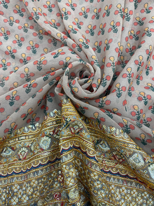 Unique Premium Ethnic Print With Heavy Multi Color Thread Embroidery And Sequin Work On Georgette Fabric
