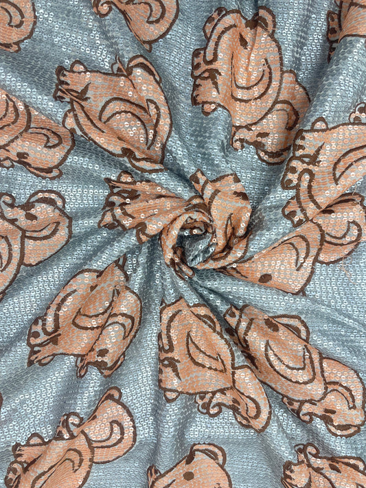 Unique Classic Figure Thread Embroidery With Sequin Work All Over Georgette Fabric