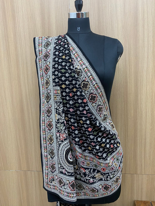 Very Luxurious Attractive Traditional Floral Thread Embroidery With Golden Sequin And Zari And Stone Work On Georgette Dupatta