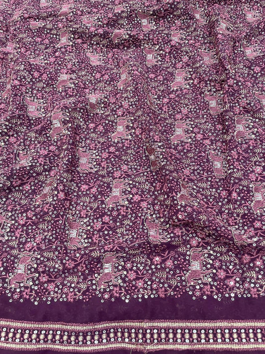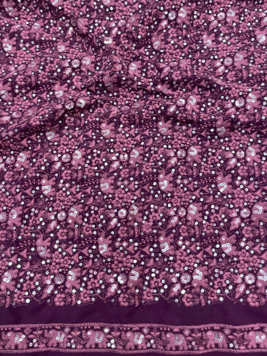 Viscose Georgette Embroidery with Mirror Work on Georgette Fabric