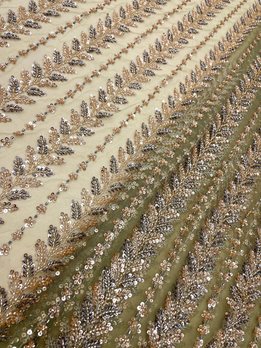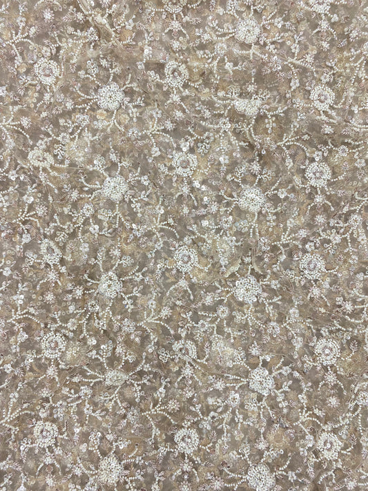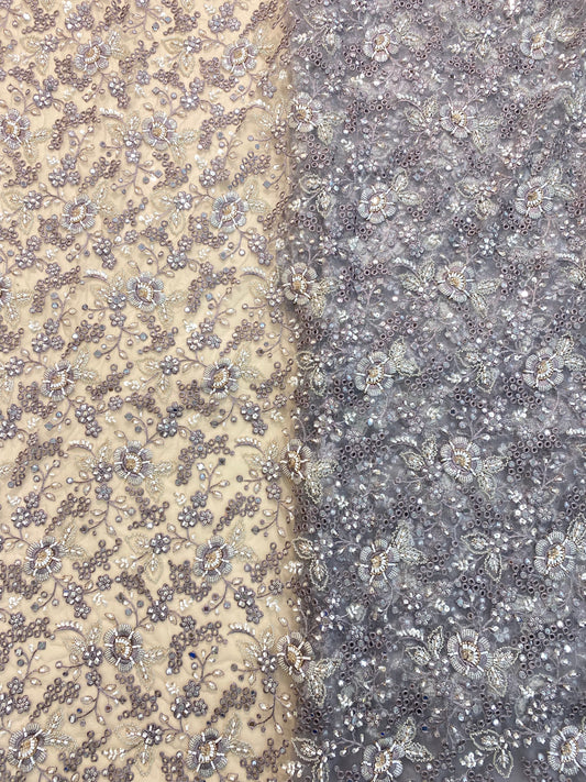 Pretty Fancy Sequins Beads And Cut Dana Embroidery On Net Fabric