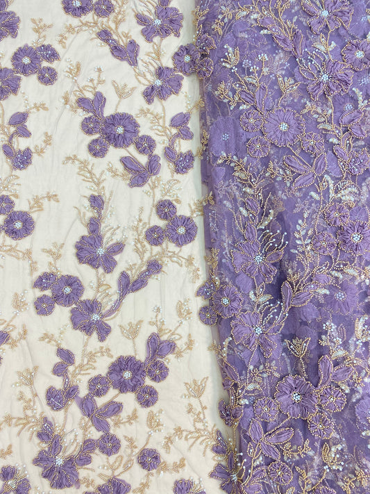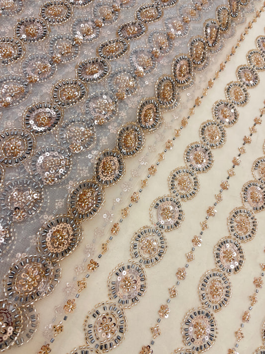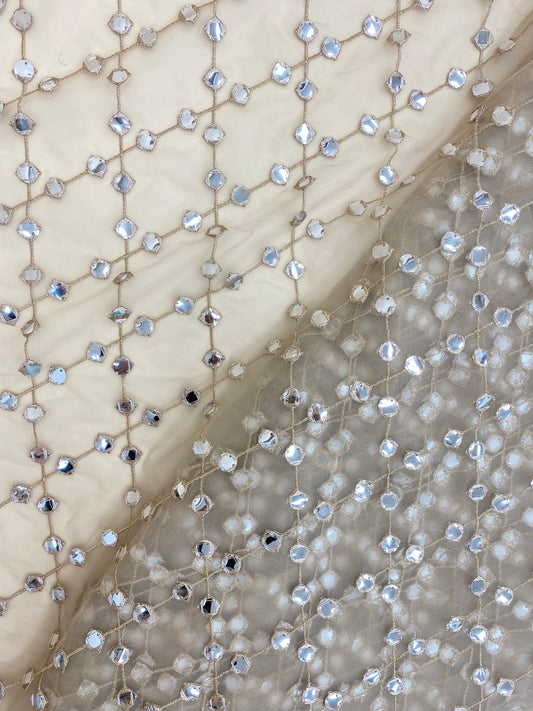 Net Patch Work Beads Embroidery (Color Available) 54"Inch
