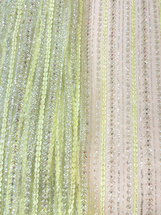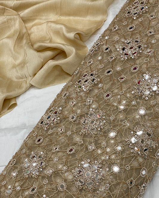 Lovely Eye Catching Sequins Beads And Cut Dana Panel Embroidery On Net Fabric