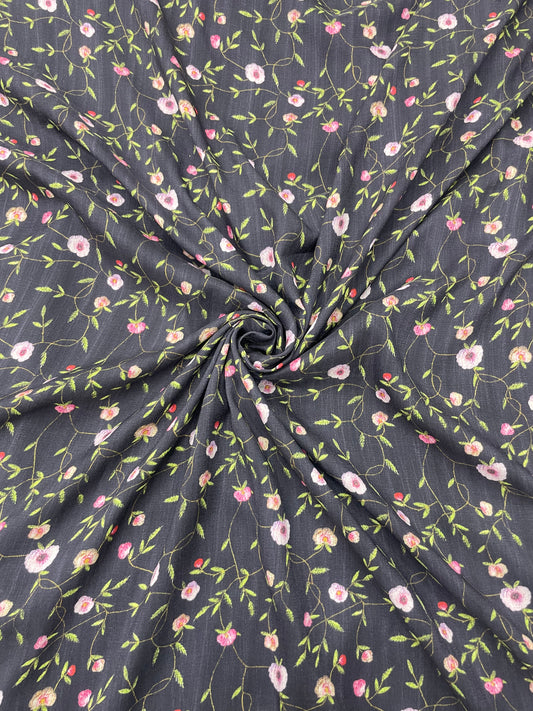 Bright Eye Catching Traditional Leafy Print On Crepe Fabric