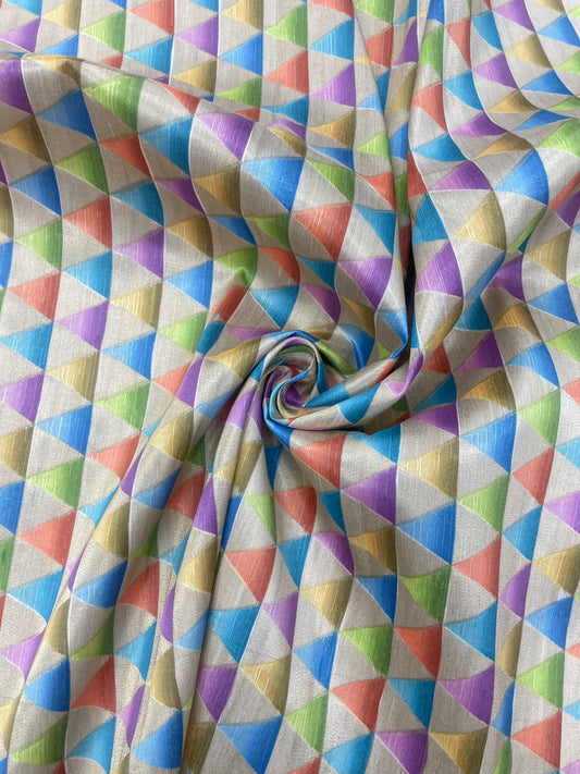 Adorable Multi Color Abstract Triangle Print On Dupion Silk Fabric