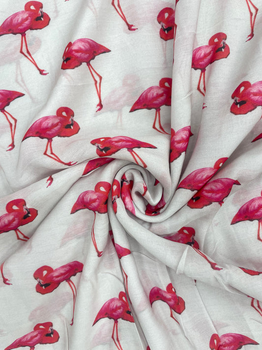 Beautiful Glorious Pretty Pink Flamingo Figure Print On Satin Silk Fabric