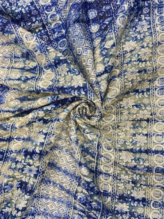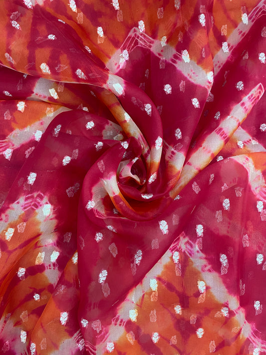 Delicate Fantastic Zig Zag Tye Dye Print With Zari Weaving On Silk Organza Fabric