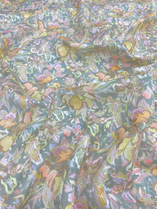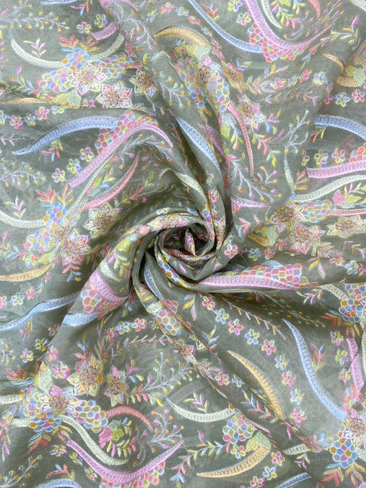 Unique Gorgeous Pretty Colorful Floral Thread Embroidery With Zari Weaving On Silk Organza Fabric
