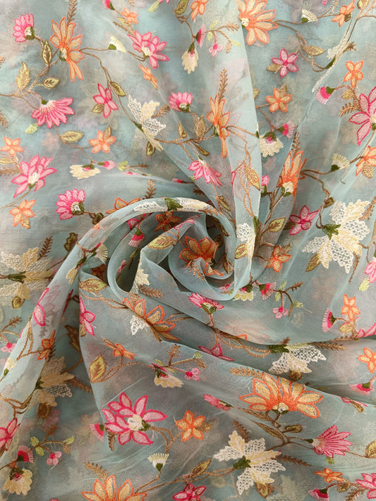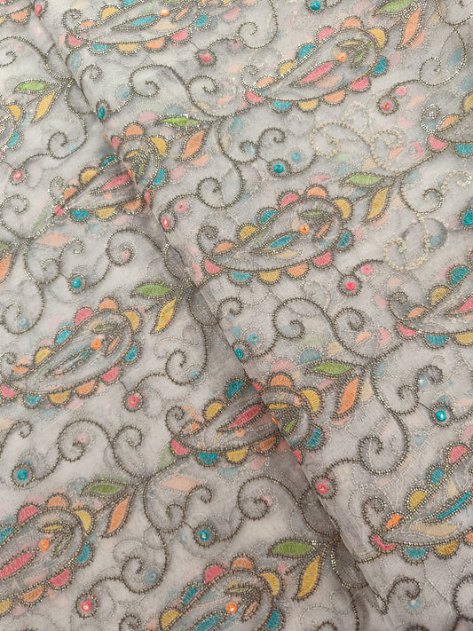 Pure Silk Organza Applique Work (Color Available) (44"Inch)