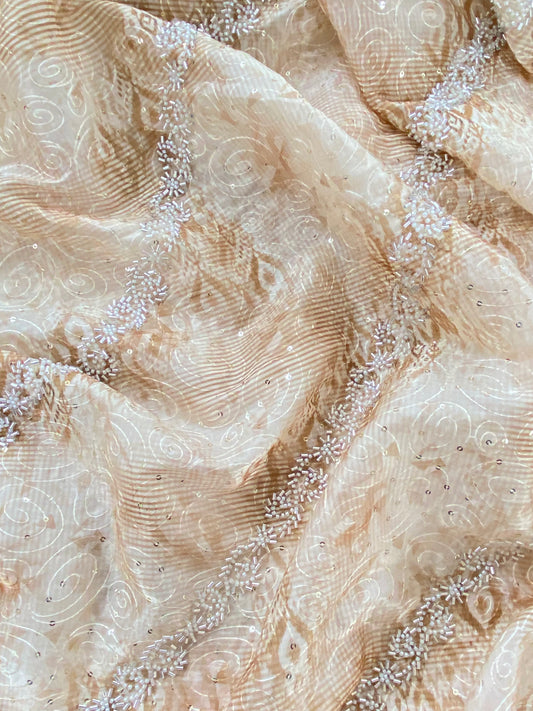 Adorable Classic Tye Dye Print With Sequin And Cut Dana Work On Organza Satin Fabric