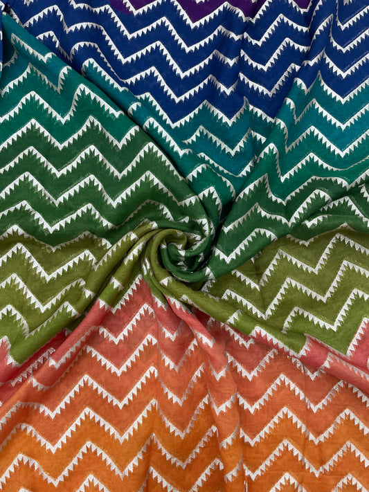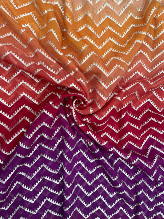 Bright Wonderful Adorable Shade Print With Zig Zag Zari Jacquard Weaving On Organza Fabric
