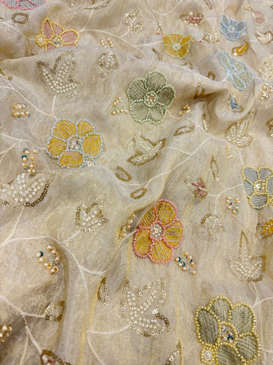 Beautiful Threads And Beads Embroidery On Tissue Fabric