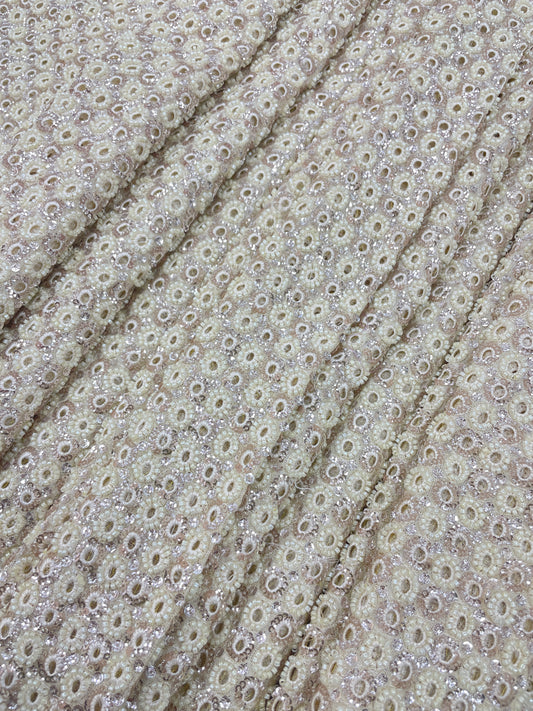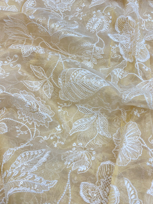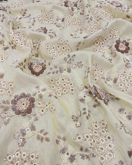 Sparkling Attractive Pretty Floral Thread Embroidery With Sequin On Dyeable Tissue Fabric