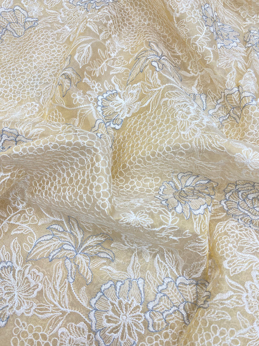 Superb Eye Catching Floral White & Grey Thread Embroidery On Dyeable Tissue Fabric