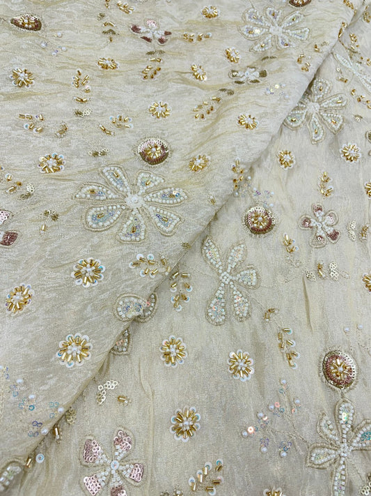 Fascinating Heavy Traditional Thread Embroidery With Golden Sequin Work On Dyeable TissueFabric