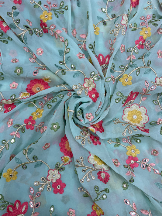 Adorable Elegant Floral Multithread Embroidery On Georgette Fabric