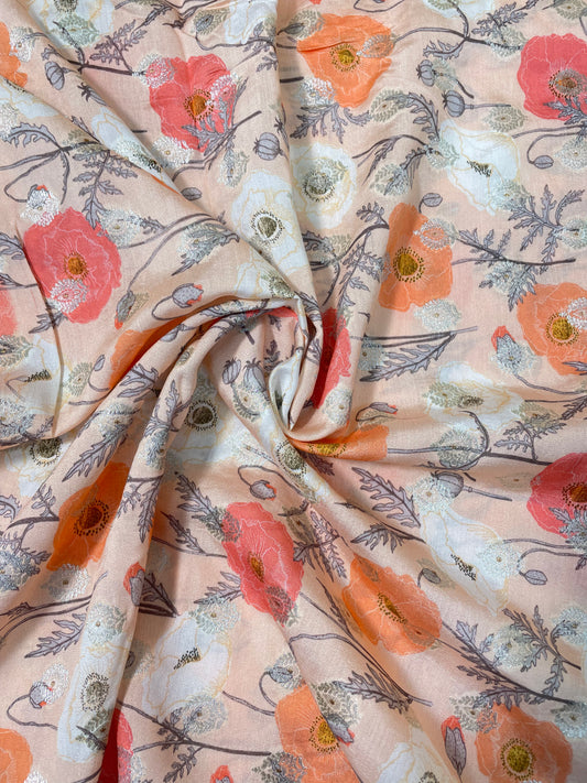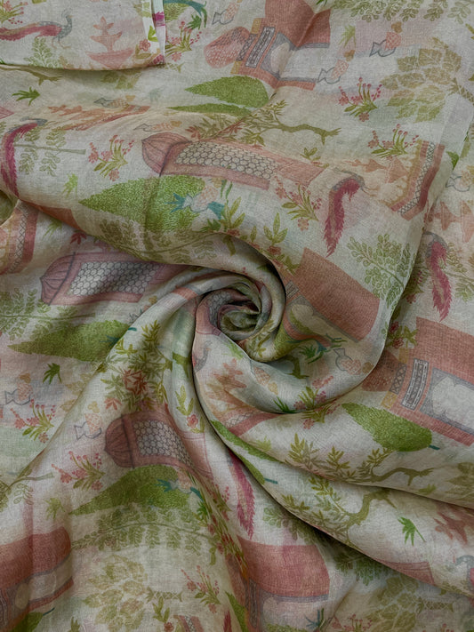 Adorable Unique Nature And Peacock Print On Tissue Fabric