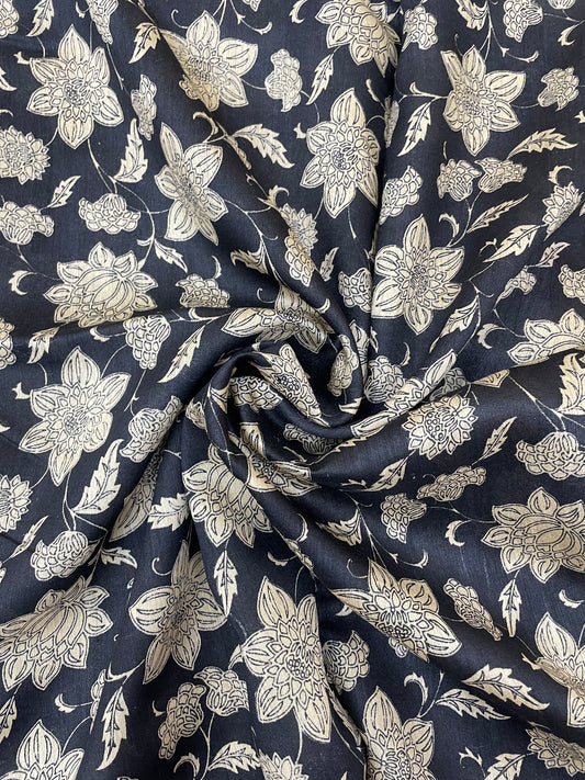 Adorable Exclusive Beige Floral Print On Black Pure Tussar Silk Fabric