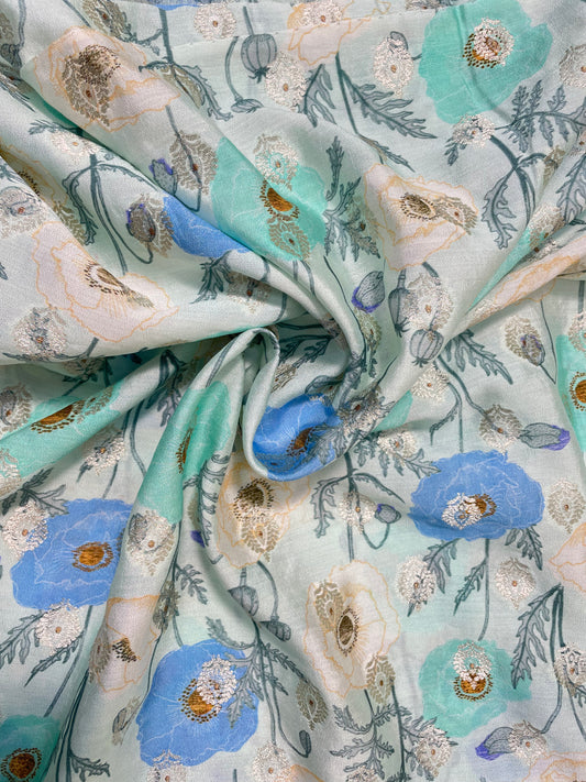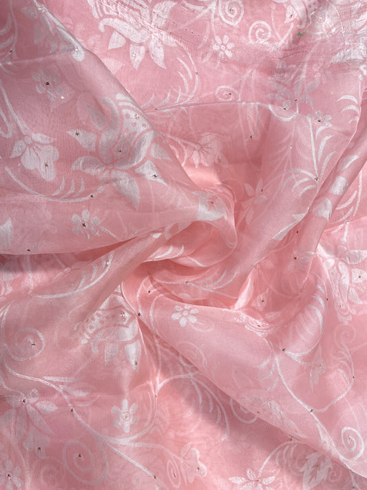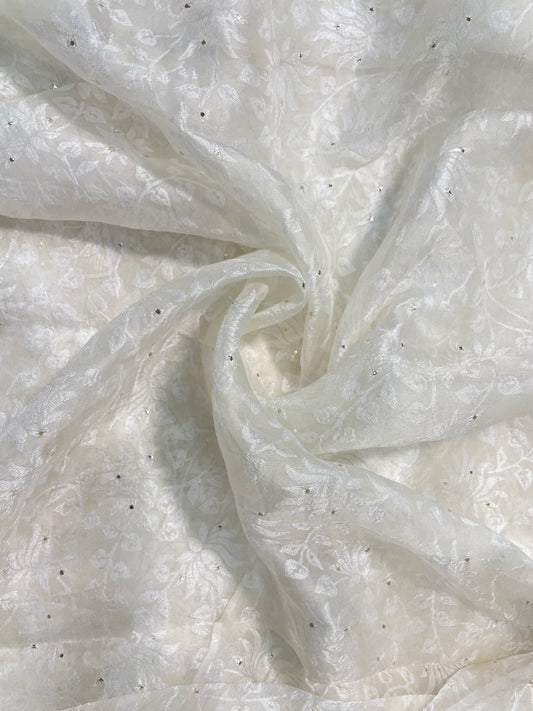 Beautiful Delicate Floral Thread Embroidery With Mukesh Work On Silk Organza Fabric