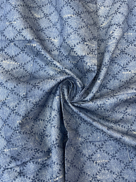 Brilliant Classic Diamond Shaped Hand Print With Mukesh Work On Pure Munga Silk Fabric