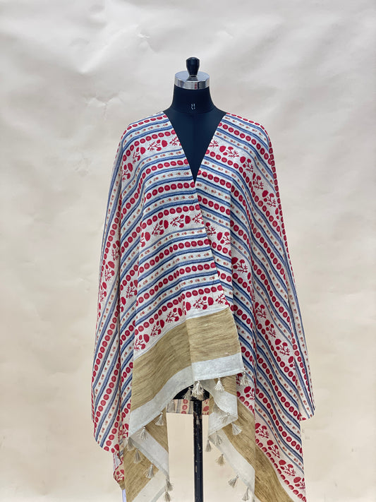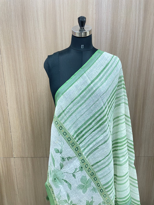Attractive Beautiful Lining Print With Hanging Tassels On Munga Tussar Dupatta