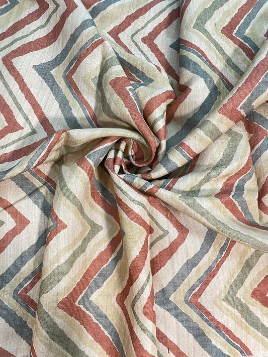 Amazing Striking Multi Color Zig Zag Print On Tussar Silk Fabric