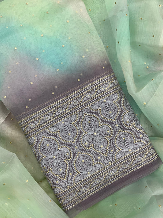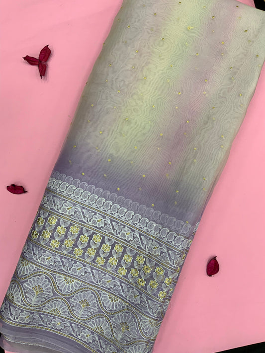 Silk Organza Embroidery With Panel (Color Available) 44"Inch