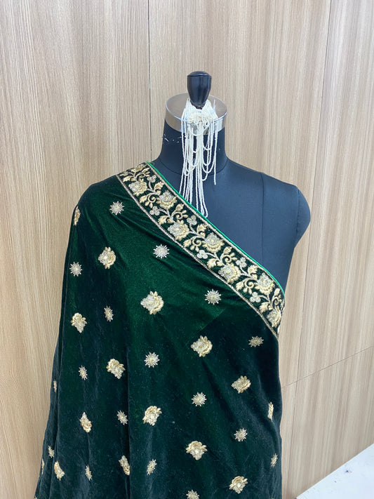 Fancy Unique Heavy Ethnic Thread Embroidery With Premium Golden Sequin And Zari Work On Green Velvet Dupatta