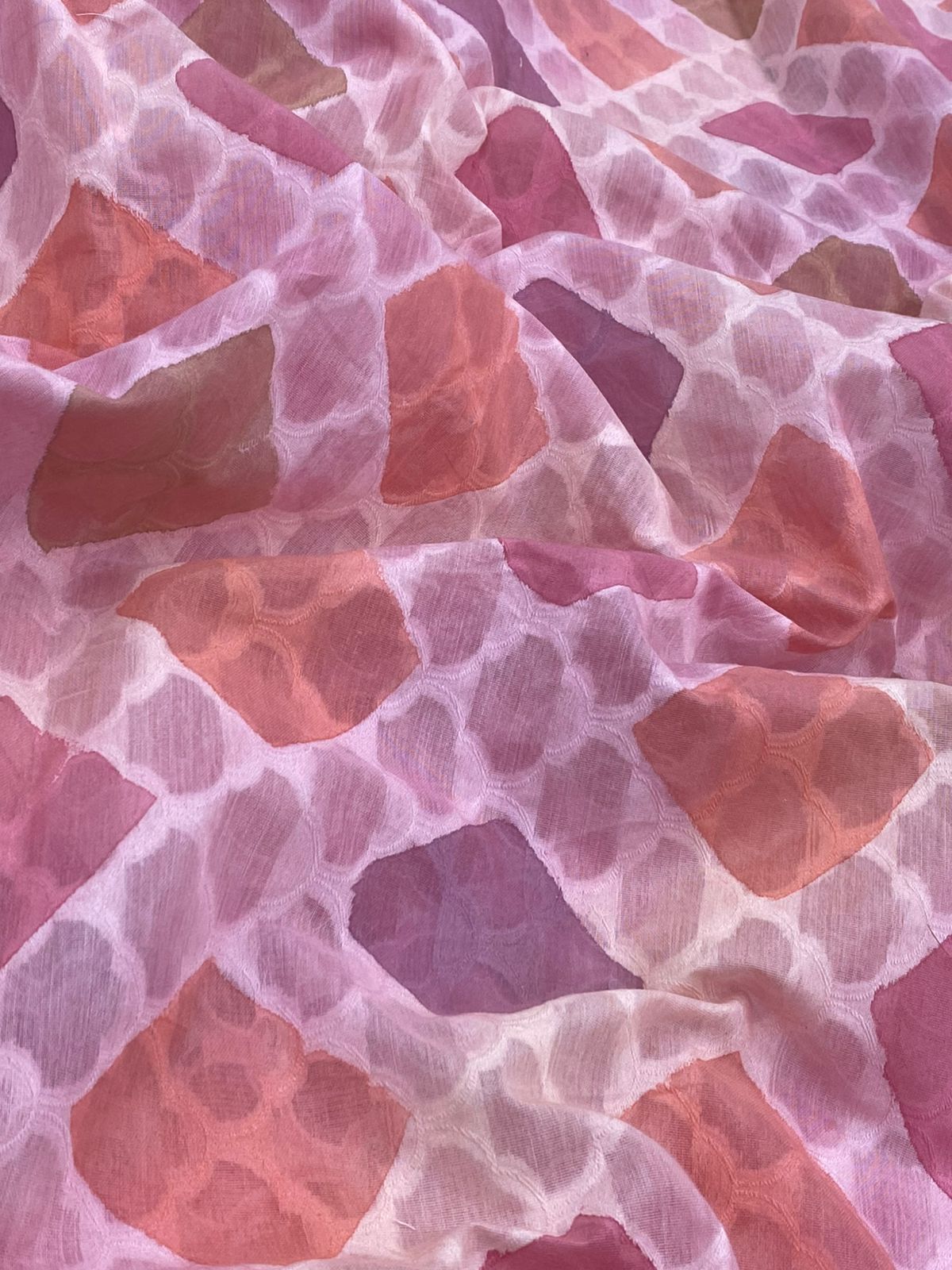 Discover the artistic elegance of Hand Brush Painted Chanderi Brocade Fabric, a graceful fusion of traditional craftsmanship and contemporary creativity, thoughtfully presented by Banaraswala Fabrics. This exquisite fabric celebrates the sheer delicacy of Chanderi brocade, elevated with expressive hand brush painting that adds a unique, artisanal charm to every yard.