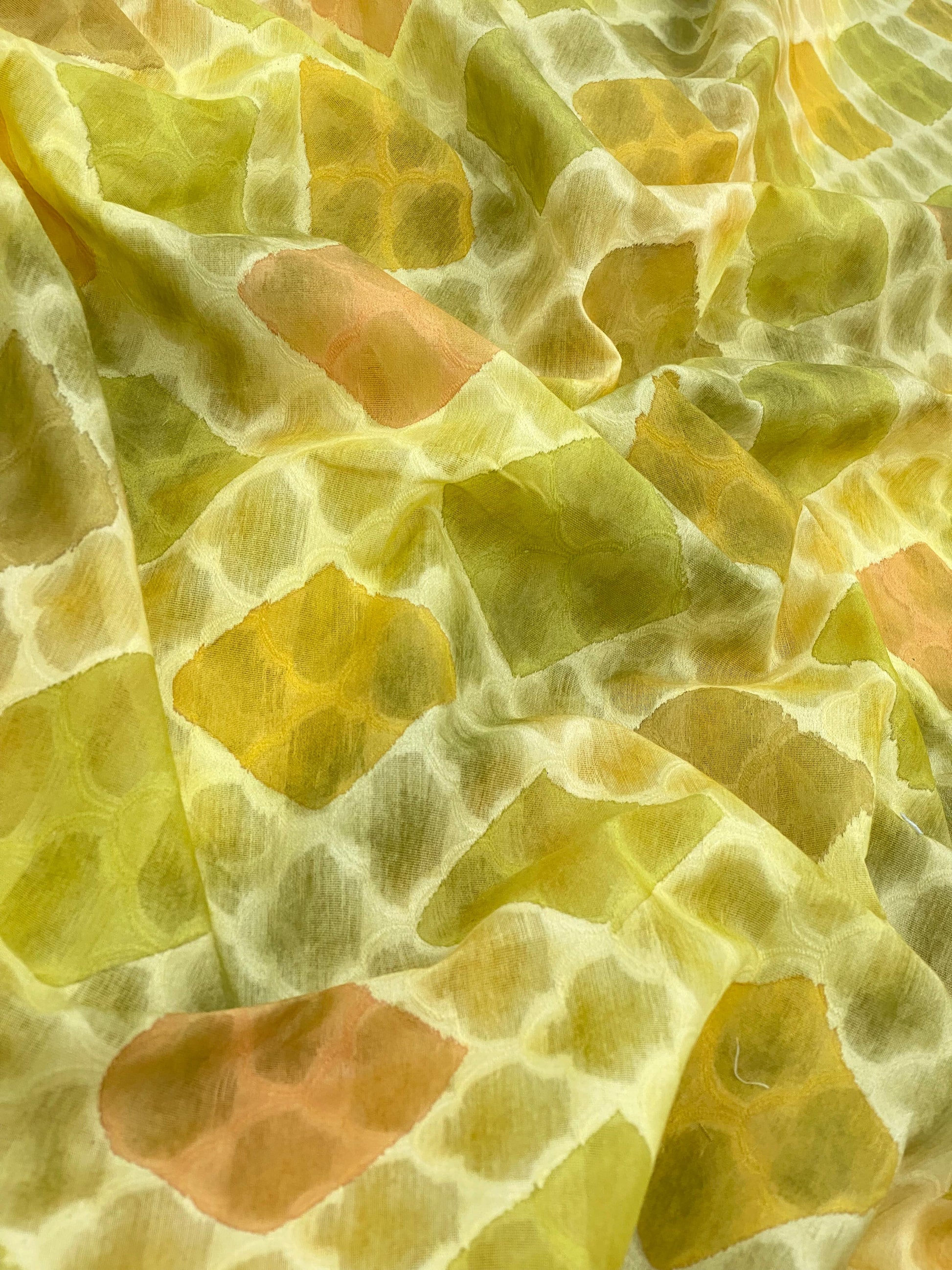 Discover the artistic elegance of Hand Brush Painted Chanderi Brocade Fabric, a graceful fusion of traditional craftsmanship and contemporary creativity, thoughtfully presented by Banaraswala Fabrics. This exquisite fabric celebrates the sheer delicacy of Chanderi brocade, elevated with expressive hand brush painting that adds a unique, artisanal charm to every yard.