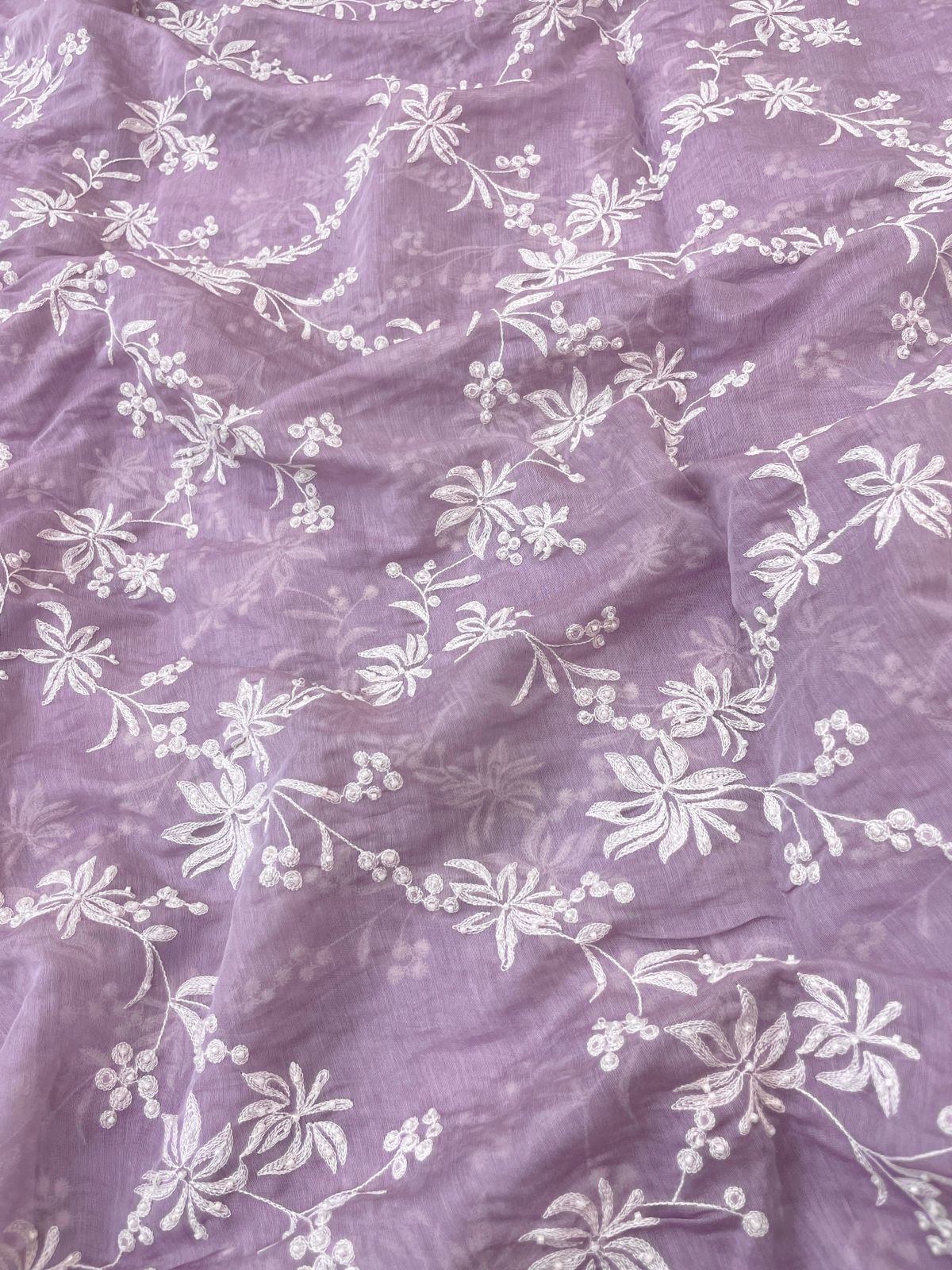 Chanderi embroidery with beads (Color Available) 44"Inch