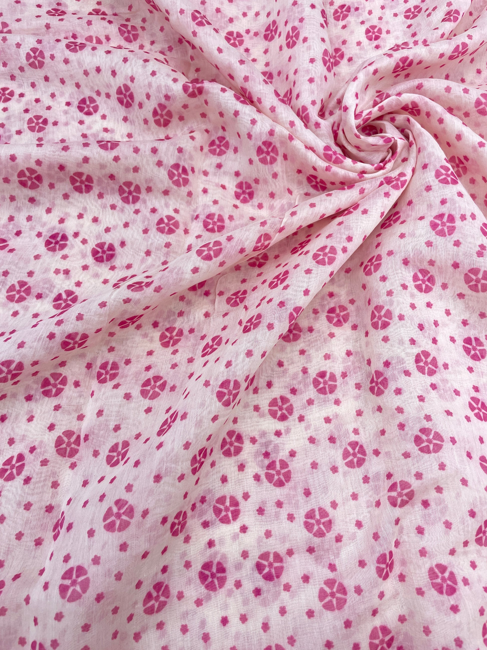 This beautiful Chanderi print fabric is perfect for making stylish and elegant outfits. It’s light, soft, and has a lovely shine that makes it stand out. Great for both traditional and modern designs, it’s easy to work with and looks amazing.