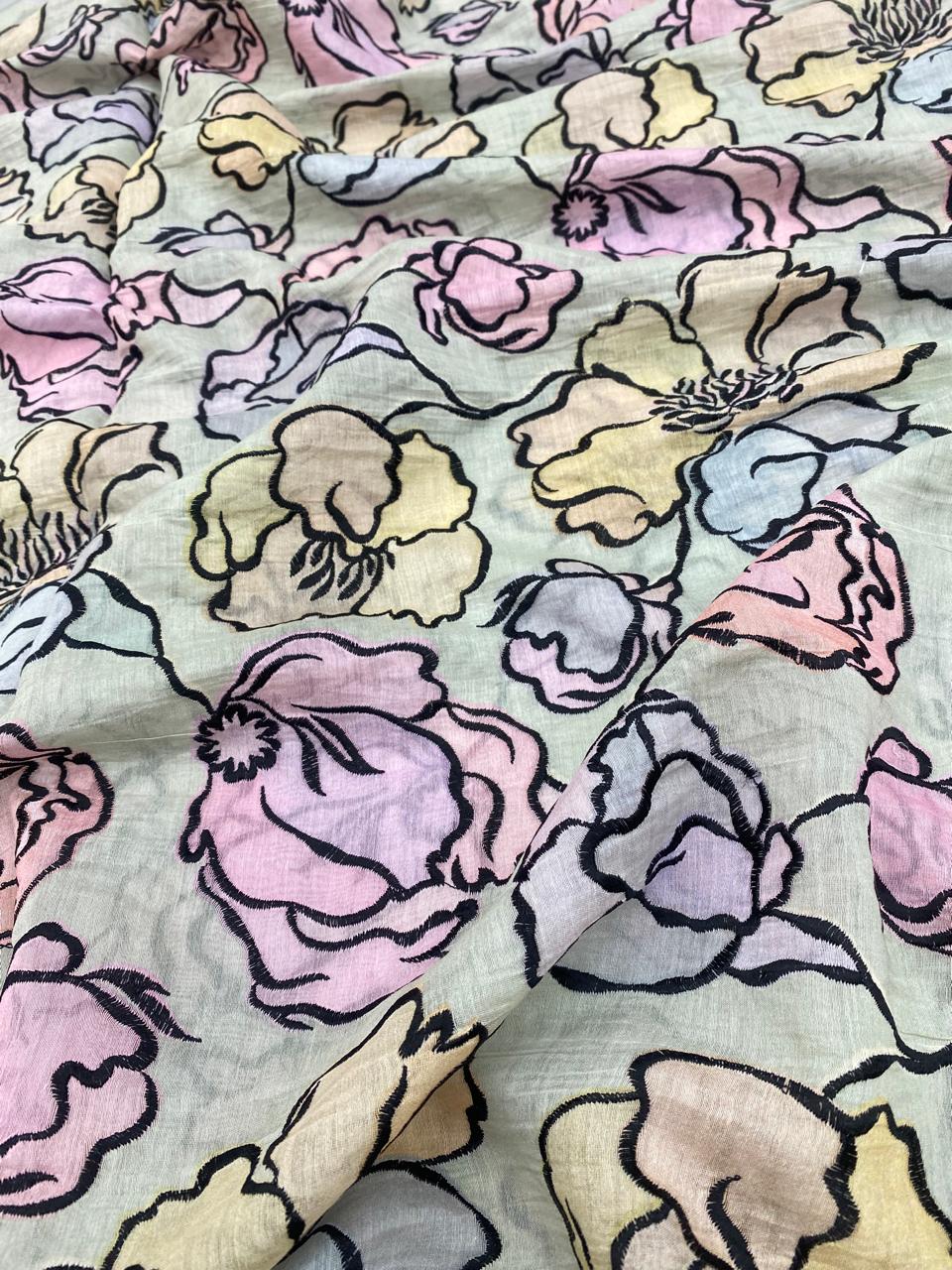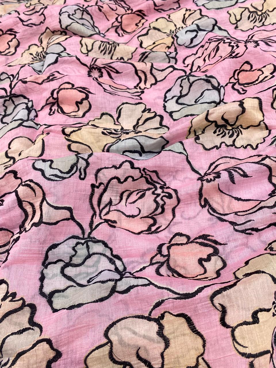 Chanderi Print With Emboidery (Colour Available) 44"Inch