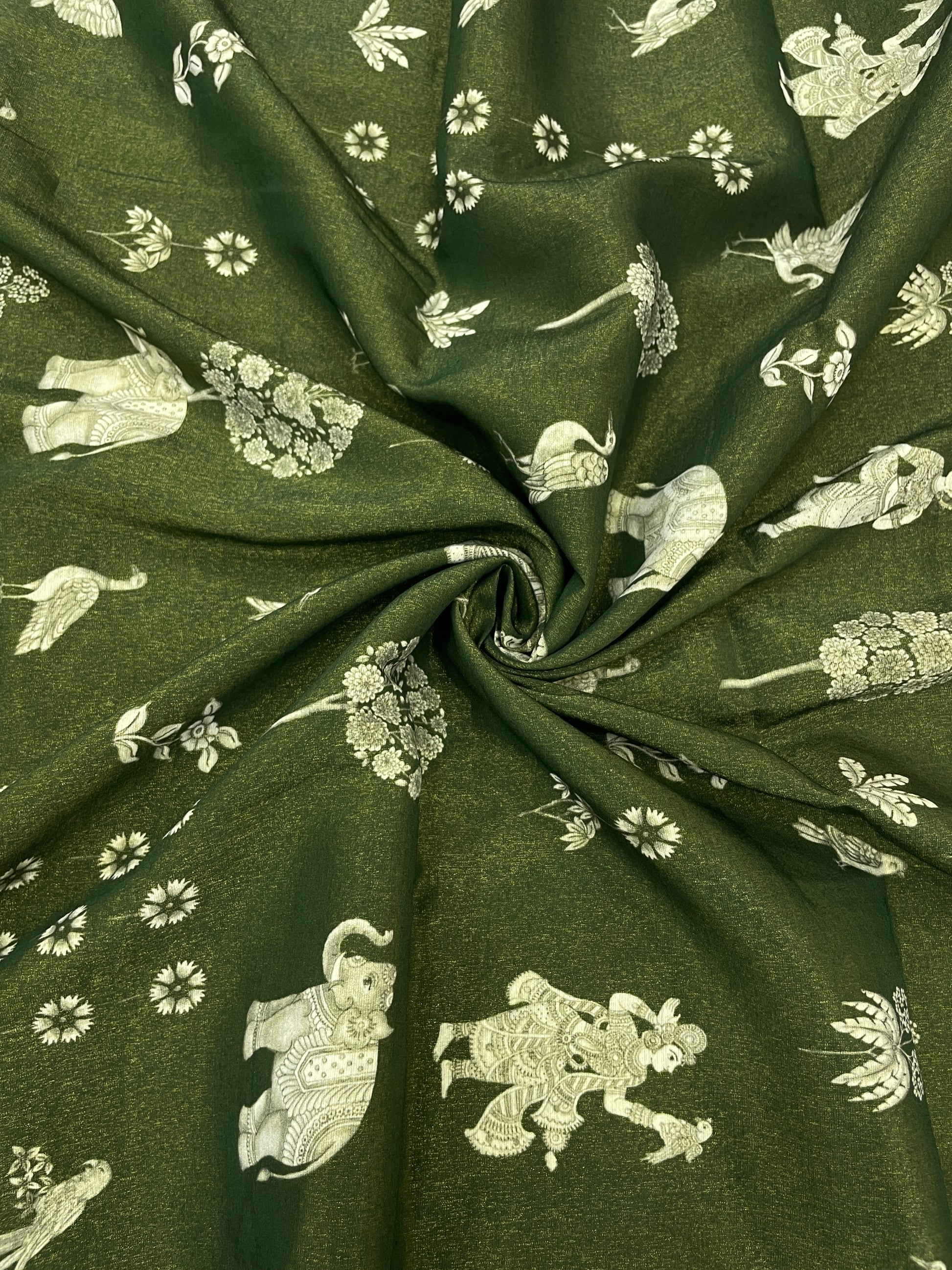 This Chanderi Tissue Print Fabric is a beautiful blend of traditional style and modern elegance. It is made from a soft mix of silk and cotton, which makes it very light, smooth, and comfortable to wear. The fabric has a natural shine and a delicate printed design that gives it a rich and graceful look. It drapes nicely, which makes it a great choice for many types of clothing like sarees, kurtis, dupattas, and lehengas. You can also use it for creative sewing projects or home décor pieces. Whether you're dressing up for a festive event or designing something special, this fabric adds a touch of class and beauty to anything you create.