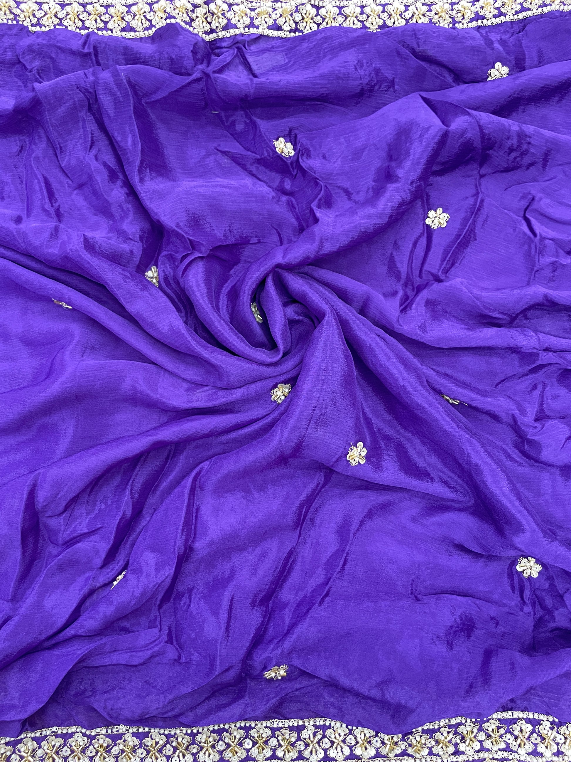 Banaraswala's Embroidery High quality Chinon fabric is Mercerized and Dyed with high quality dyes to ensure vibrant colours and very good colour solidity. Chinon fabric gives the wearer a slimming appearance and has a very graceful fall, making it a great fabric comfortable for party events and other formal occasions.