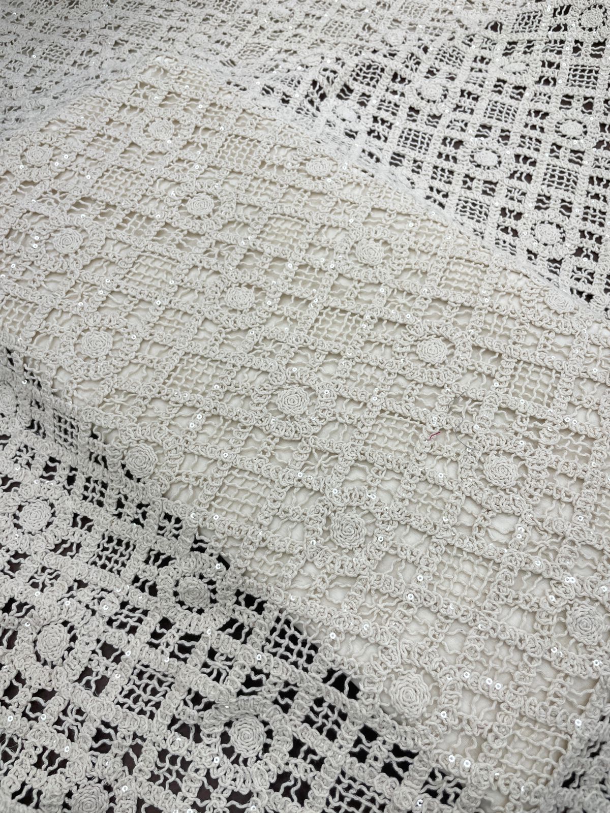 - This splendid fabric blends sensitive crochet artistry with stylish rose floral motifs, presenting an elegant and high-priced fabric ideal for classy designs.