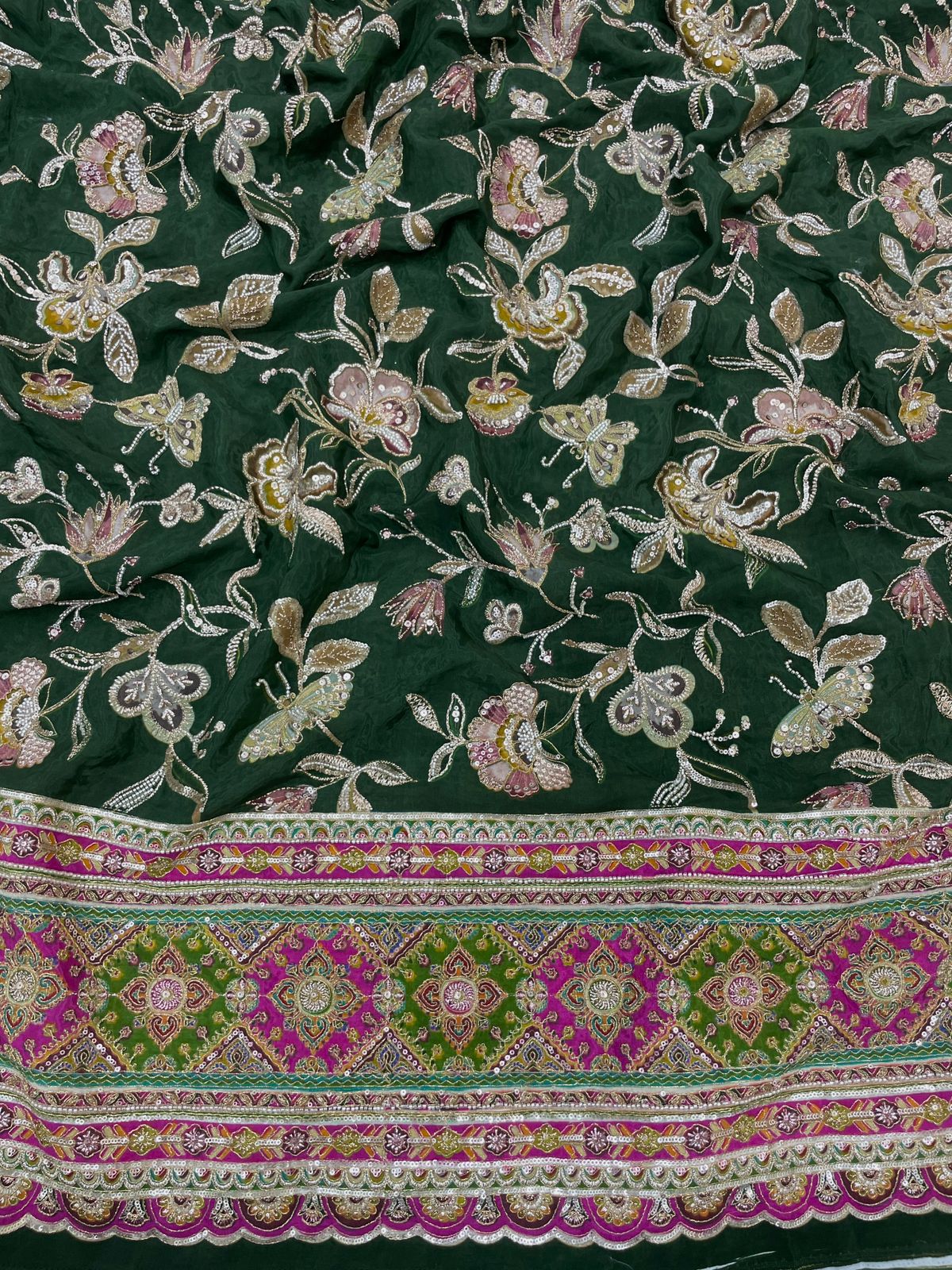 Crepe Position Print With Handwork Pannel Embroidery (Colors Available)