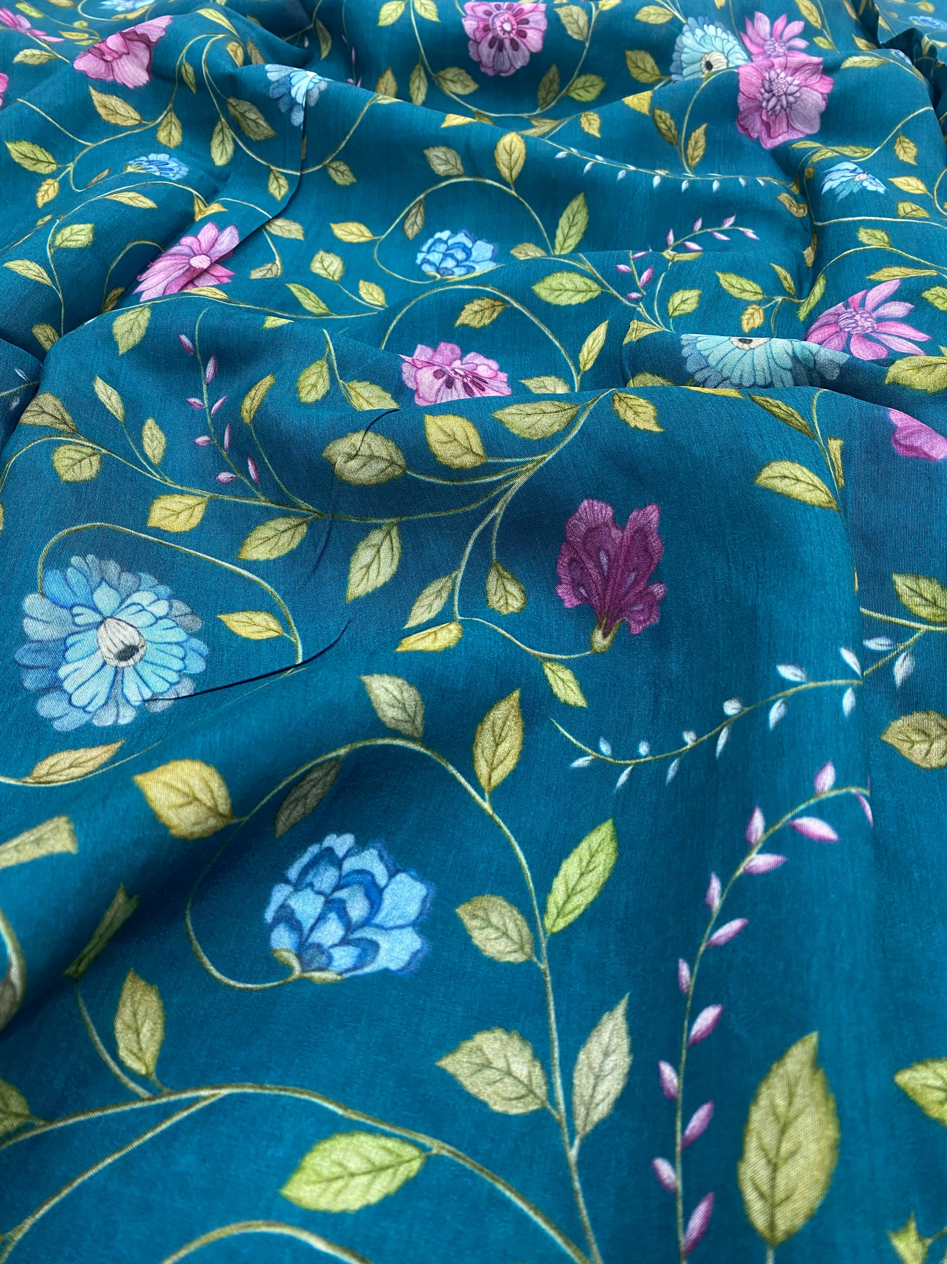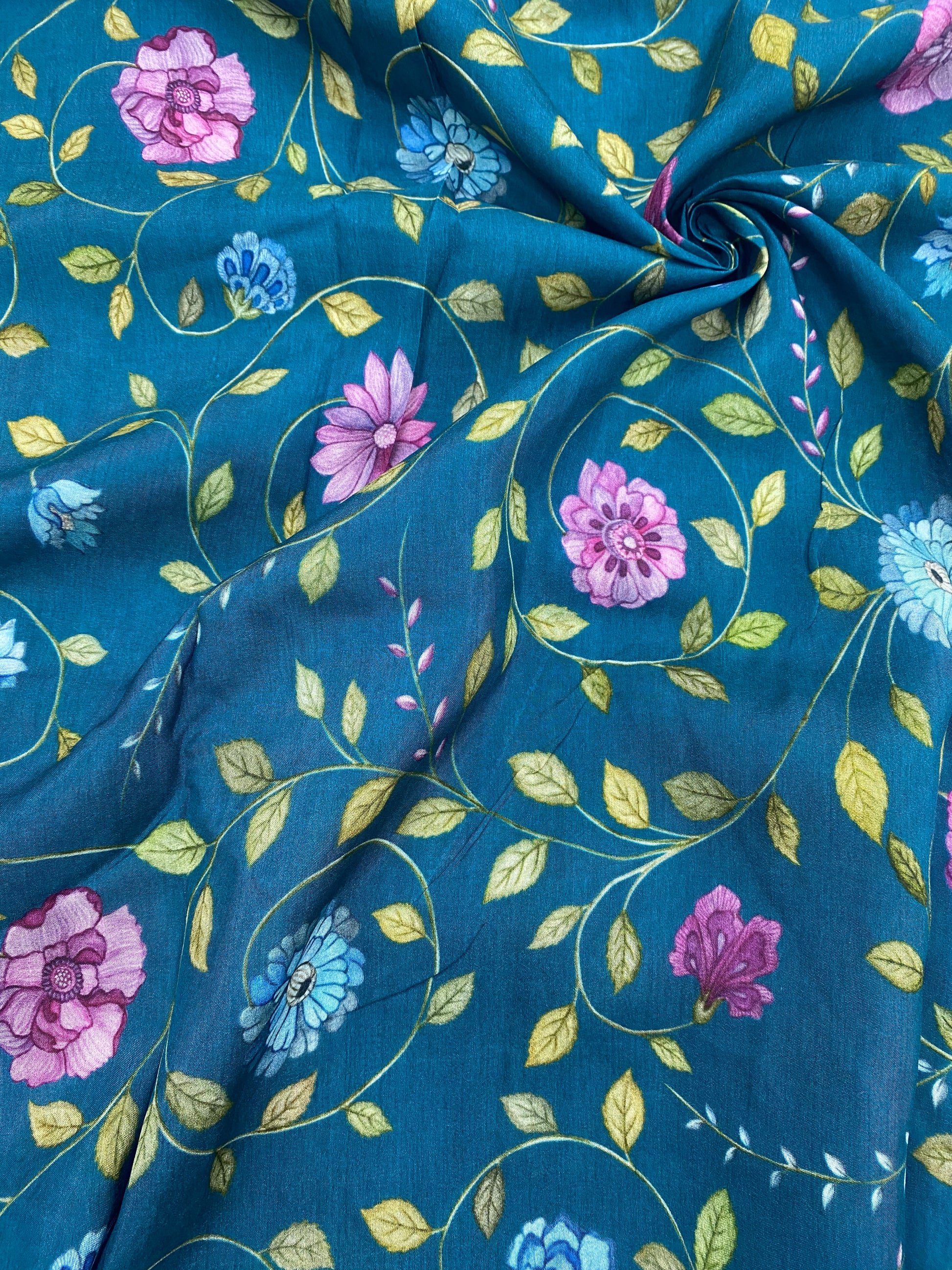 The mesmerizing build of this fabric makes it appealing. Banaraswala's Digital Print Art Dola Silk Fabric is a blend of polyester and silk threads for exceptional strength and desired texture. This incredible fabric has a great fall, with slight sheerness for the right kind of elegance. The super airy fabric of dola silk feels tender against your skin and sends soothing waves of delight throughout your being. You can use this fabric to make suits, Kurtis, maxi, gowns, coordinated sets, scrunches, and a lot more.